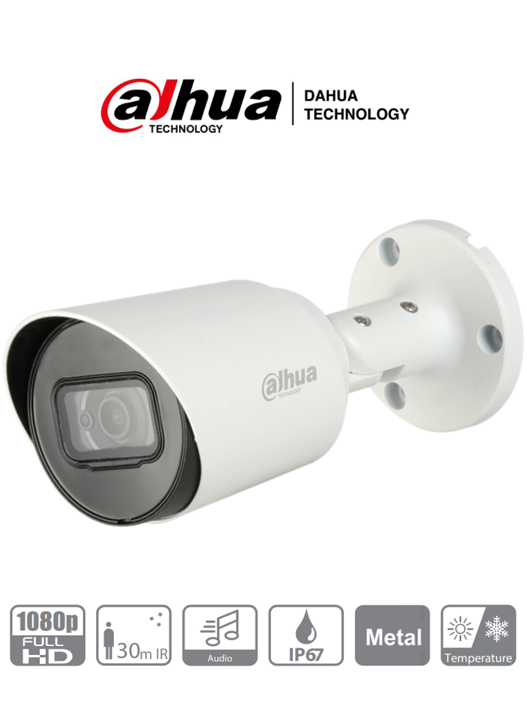 DAHUA HFW1200T-A - Camara Bullet HDCVI 1080p / Audio Integrado/ 103 Grados de Apertura/ Lente 2.8 mm / IR 30 Mts/ IP67/ Metalica/ DWDR/ BLC /HLC